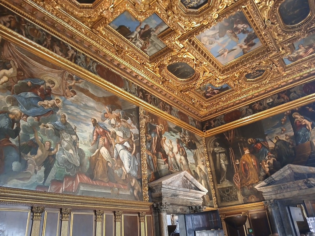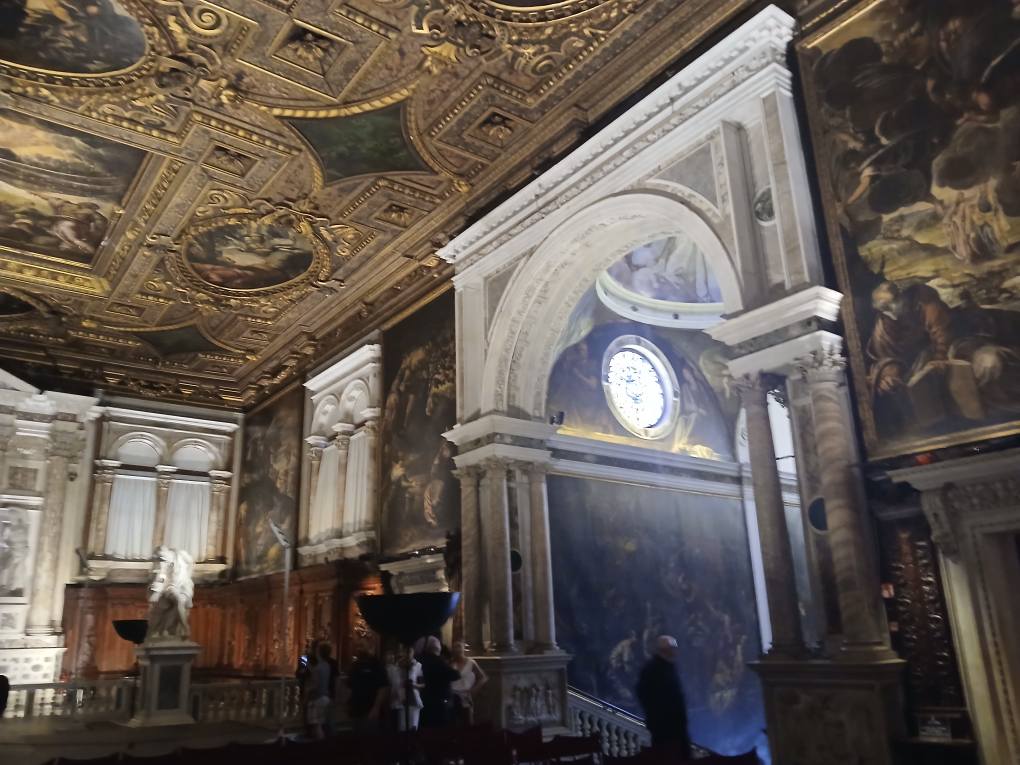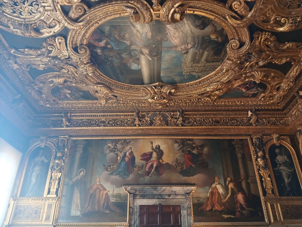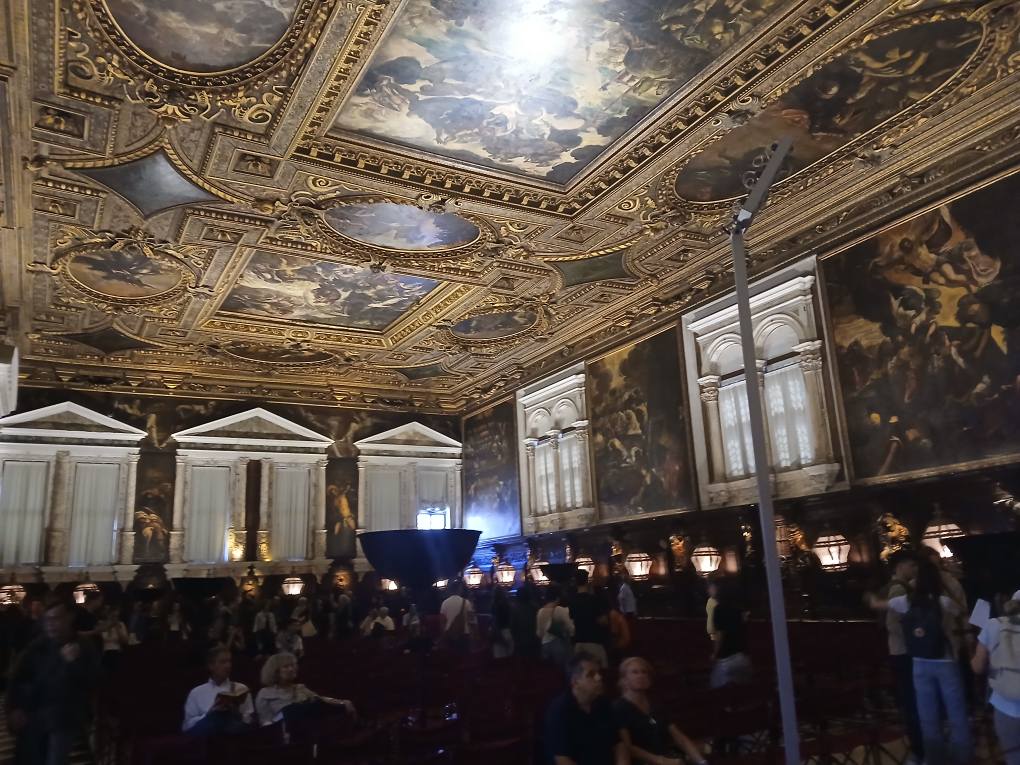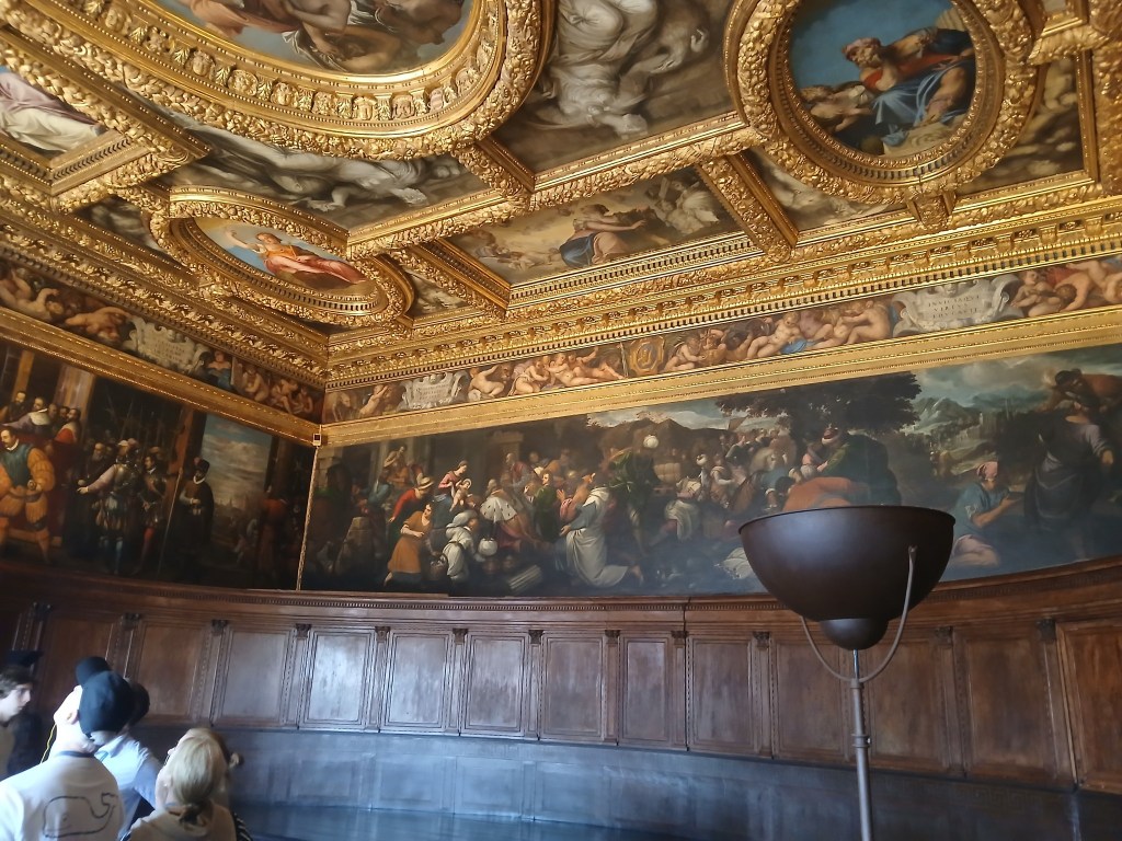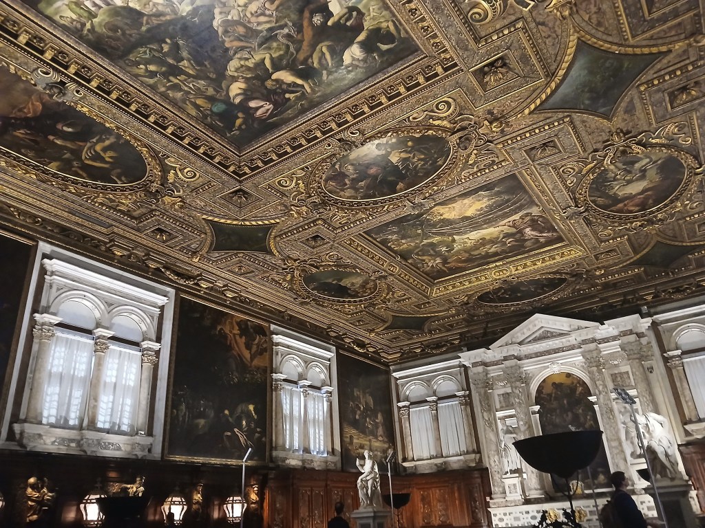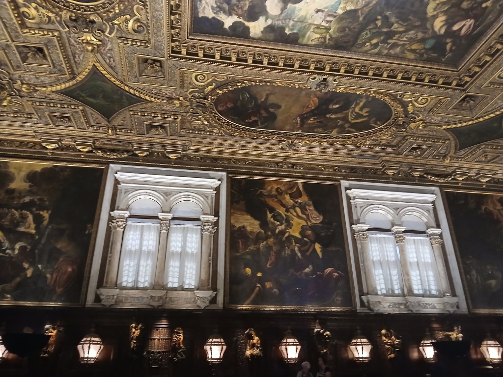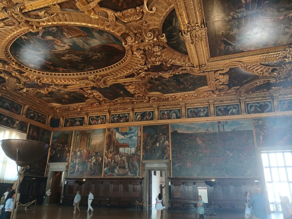 After a cappuccino and cornetto, we headed to Piazza San Marco to visit the always somewhat overwhelming Palazzo Ducale, with the great rooms decorated by Tintoretto, Veronese, and other Venetian masters. Rooms overflowing with history, as this was where the Doge, the Consiglio dei Dieci, the Maggior Consiglio, the Senato, the various courts, met and ruled the vast Repubblica Serenissima di Venezia for centuries.
