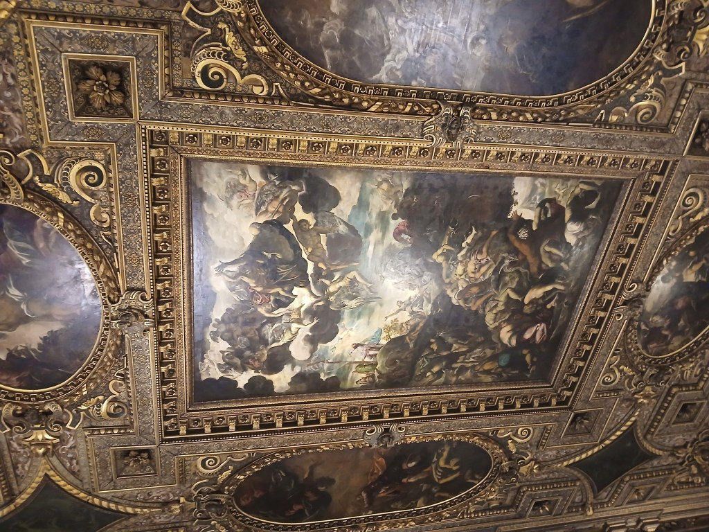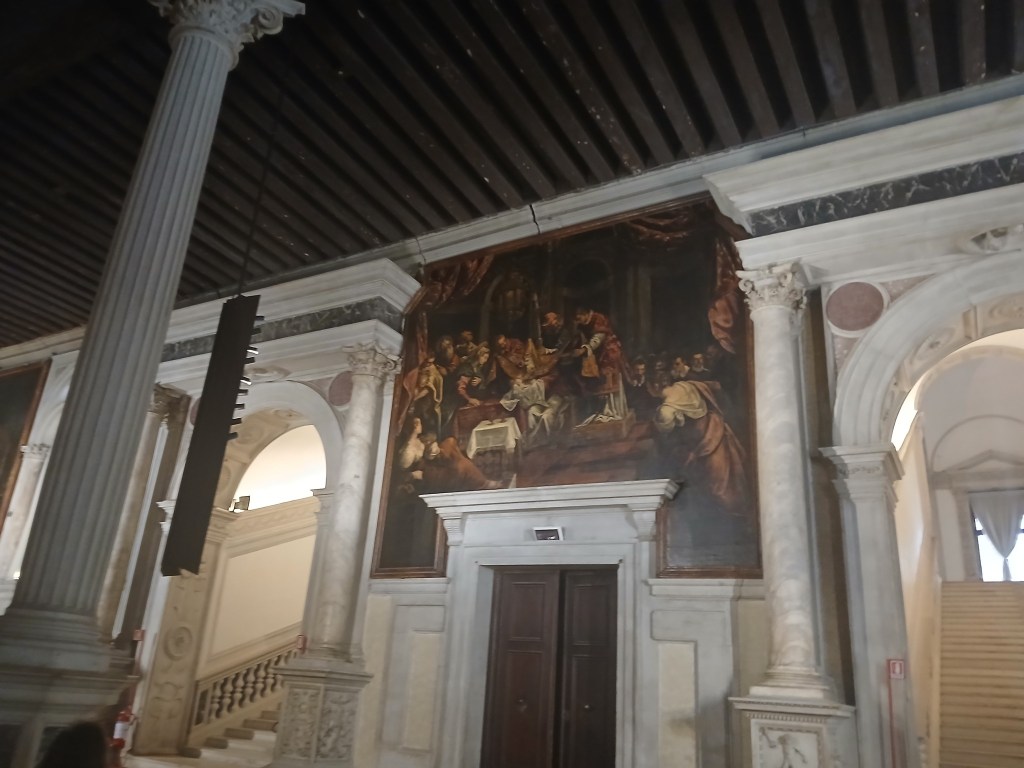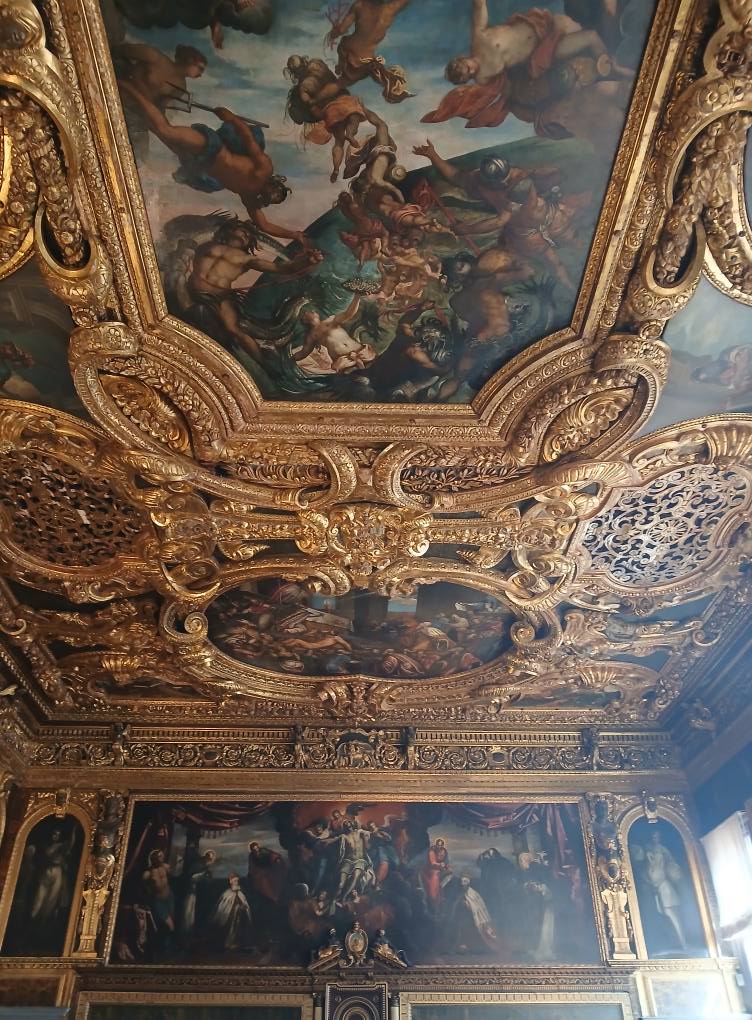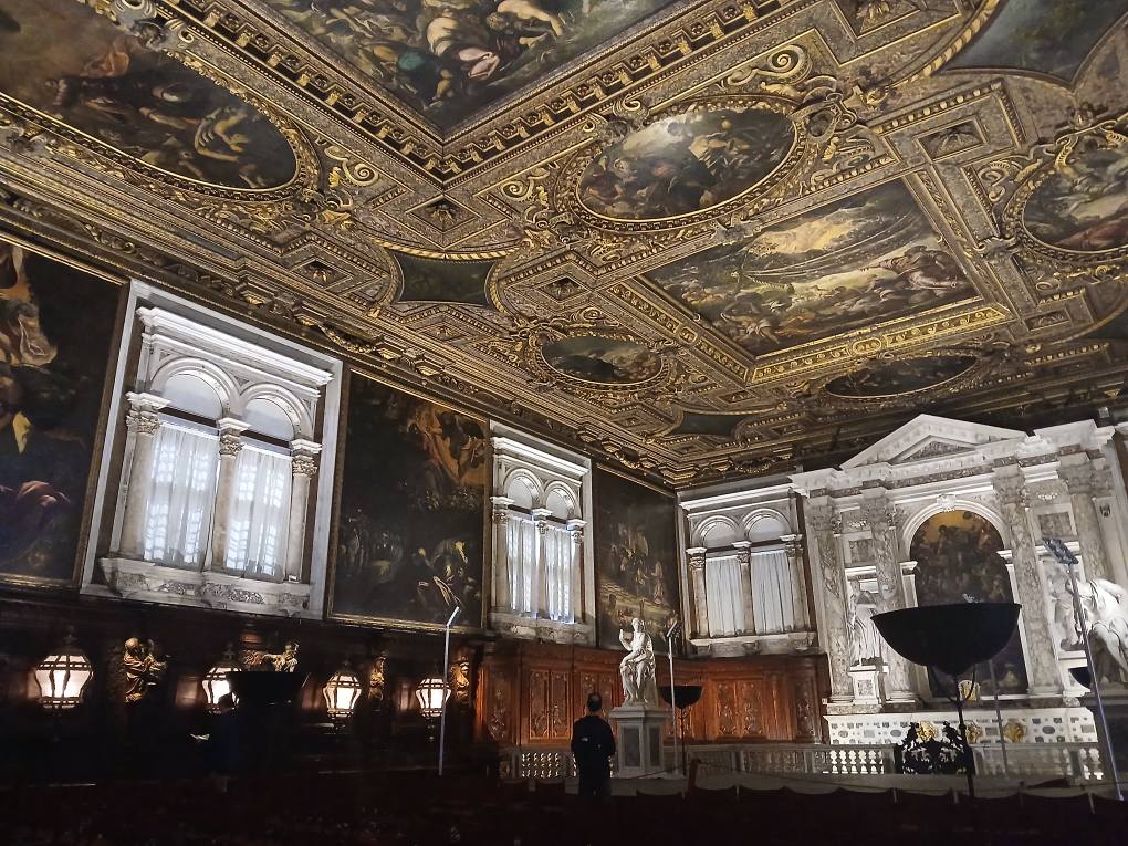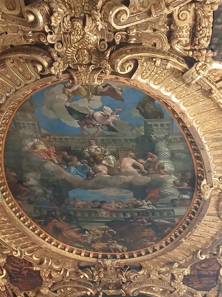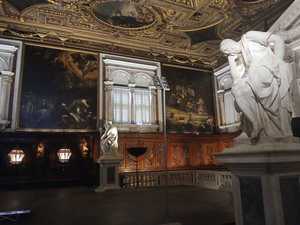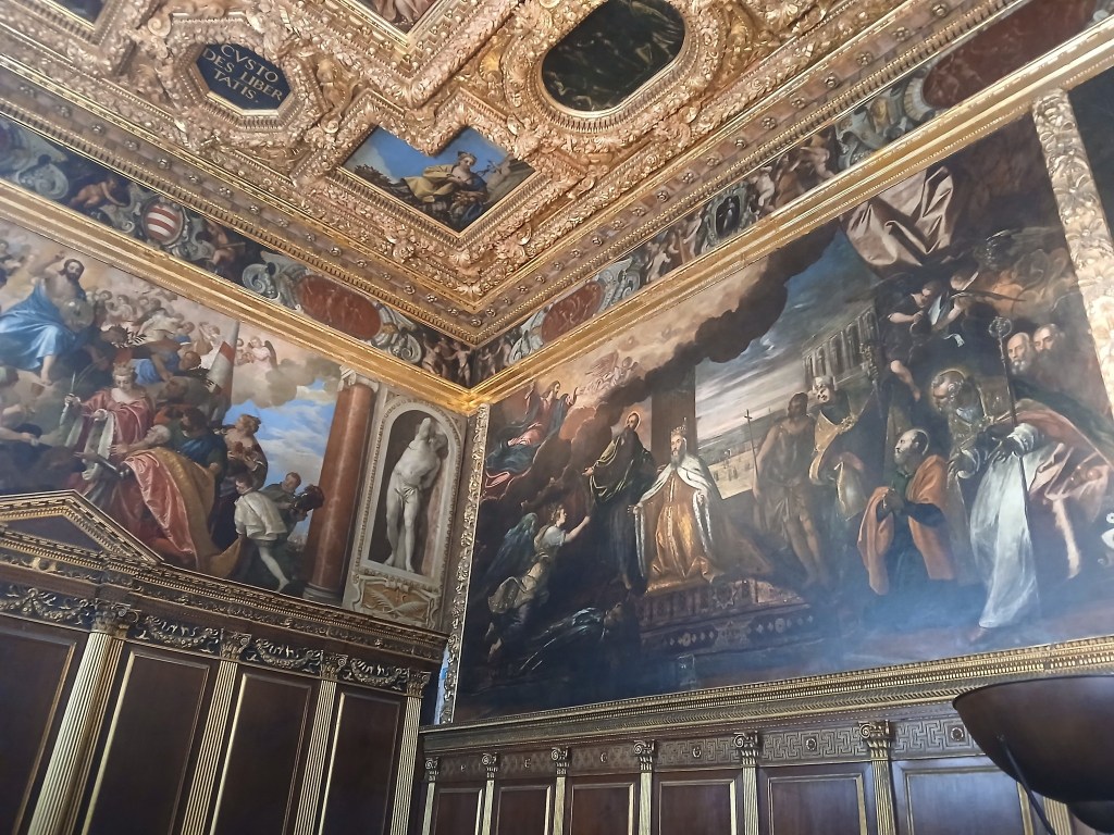 After a cappuccino and cornetto, we headed to Piazza San Marco to visit the always somewhat overwhelming Palazzo Ducale, with the great rooms decorated by Tintoretto, Veronese, and other Venetian masters. Rooms overflowing with history, as this was where the Doge, the Consiglio dei Dieci, the Maggior Consiglio, the Senato, the various courts, met and ruled the vast Repubblica Serenissima di Venezia for centuries.