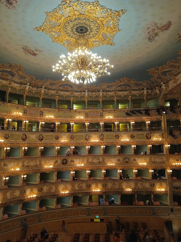 Then to Verdi’s opera Attila, which premiered in this very house, Gran Teatro la Fenice, in 1846. And, appropriately for a wedding anniversary, it even had a happy ending. After a prosecco in the lovely bar room, we proceeded to our box in the third circle. La Fenice is without doubt the greatest venue that I have ever attended an opera in; it’s tiny size and great acoustics really brought the music to life. The splendor and beauty of the place really brought us back in time, and made us feel for a moment like members of a family in the Libro d’Or. The singers and musicians were terrific, and this will be one of the most memorable evenings of my life.