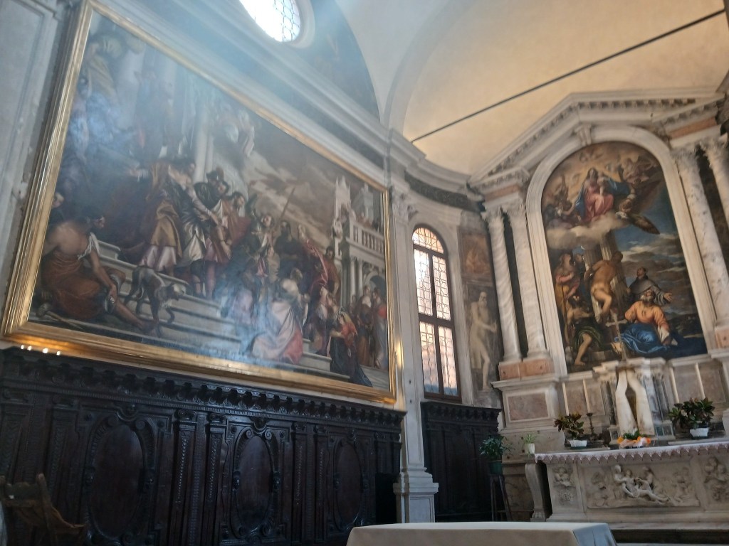 From the Redentore we took the vaporetto back across to le Zattare, walking with a brief detour by the lovely gondola cantiere to church of San Sebastiano with its painting and fresco cycle by Veronese.